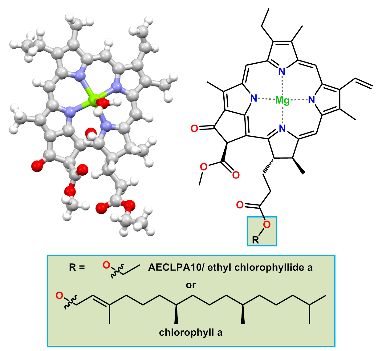 - Fun fact about the structure: Chlorophyll has 6 forms all with a long chain ester making them challenging to crystallise leading to waxy or amorphous solids. This led to analogous compounds being crystallised with small esters.
